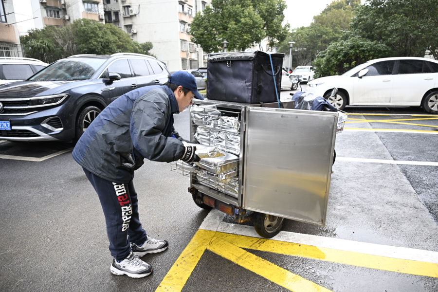 “阿婆,开门,今天的午饭来啦!”伴随着一叠声的高声招呼,送餐员孙中法准时出现在保德路921弄居民区,他用力地敲响87岁独居王阿婆家的铁门。因阿婆听力衰退耳背、腿脚不方便,他每次敲门和招呼声都会格外大一些,等待也会更耐心一些。“小孙师傅,你来啦!外面这么冷,今天的饭菜还这么热乎!”王阿婆打开门,热情地招呼。“今天大降温,更要保障你们吃上热乎饭。我们送餐车都是保温箱,今天还加装了加热条,饭菜盒也都装进了保温袋里,‘三重保障’确保热乎!”孙师傅笑呵呵地把饭菜递给老人,还嘱咐她要做好用电安全防范工作。